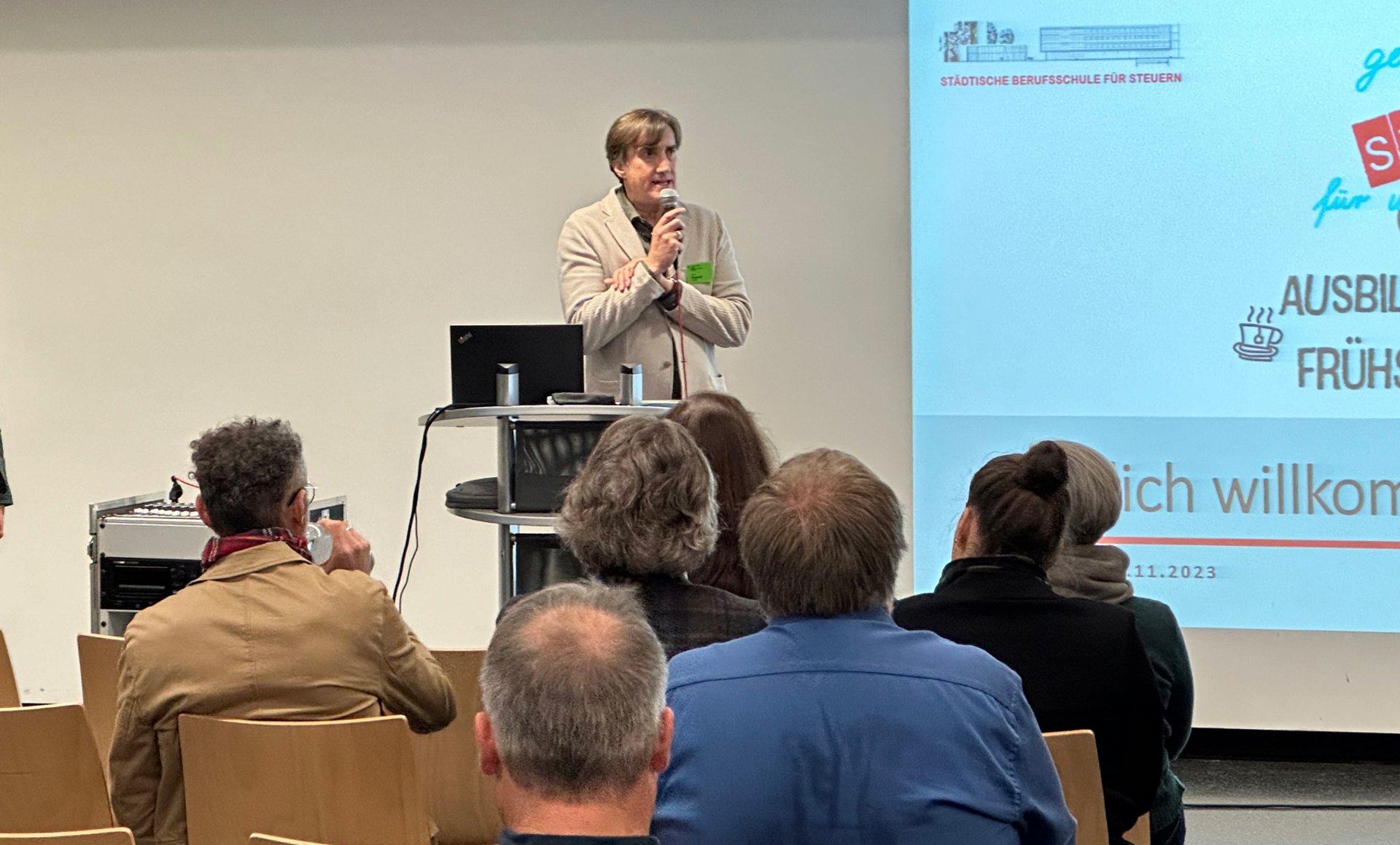Begrüßt wurden die Gäste aus den Ausbildungsbetrieben vom neuen Schulleiter, Herrn Wolfgang Frietsch, der sich bei dieser Gelegenheit auch den Ausbilderinnen und Ausbildern vorstellte.