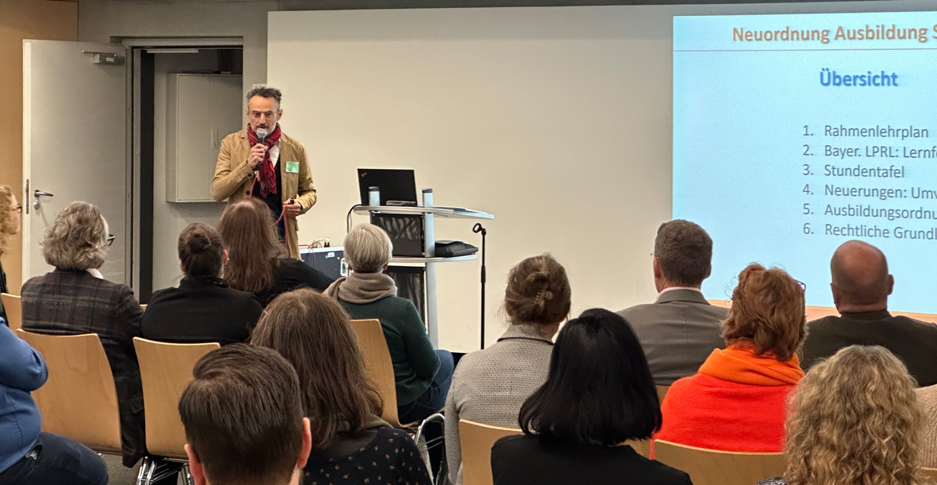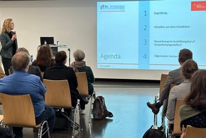 Frau Tina Gabler, stellvertretende Schulleiterin, sowie Fachkoordinator Bernhard Kaspar informierten anschließend umfassend über Änderungen in der Neuordnung, insbesondere über die Ausgestaltung des neuen kompetenzorientierten Lehrplans, mit dessen Kernziel, der Vermittlung beruflicher Handlungskompetenz.