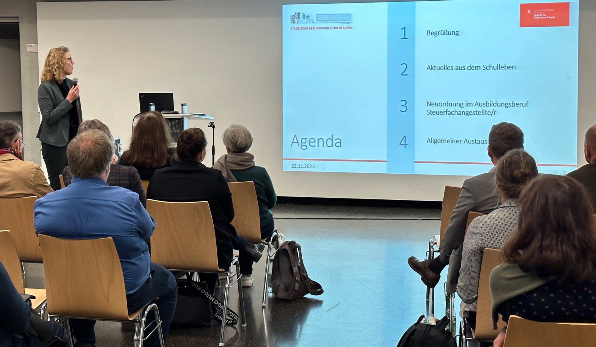 Am Ende der Veranstaltungen nutzten viele Ausbilder*innen die Gelegenheit zum gemeinsamen Austausch mit der Schulleitung, den Lehrer*innen und den Vertreter*innen der Steuerberaterkammer München. Dabei gab es viele wertvolle Anregungen, Ideen und Impulse, wie eine bestmögliche Förderung unserer Auszubildenden erreicht werden könne.